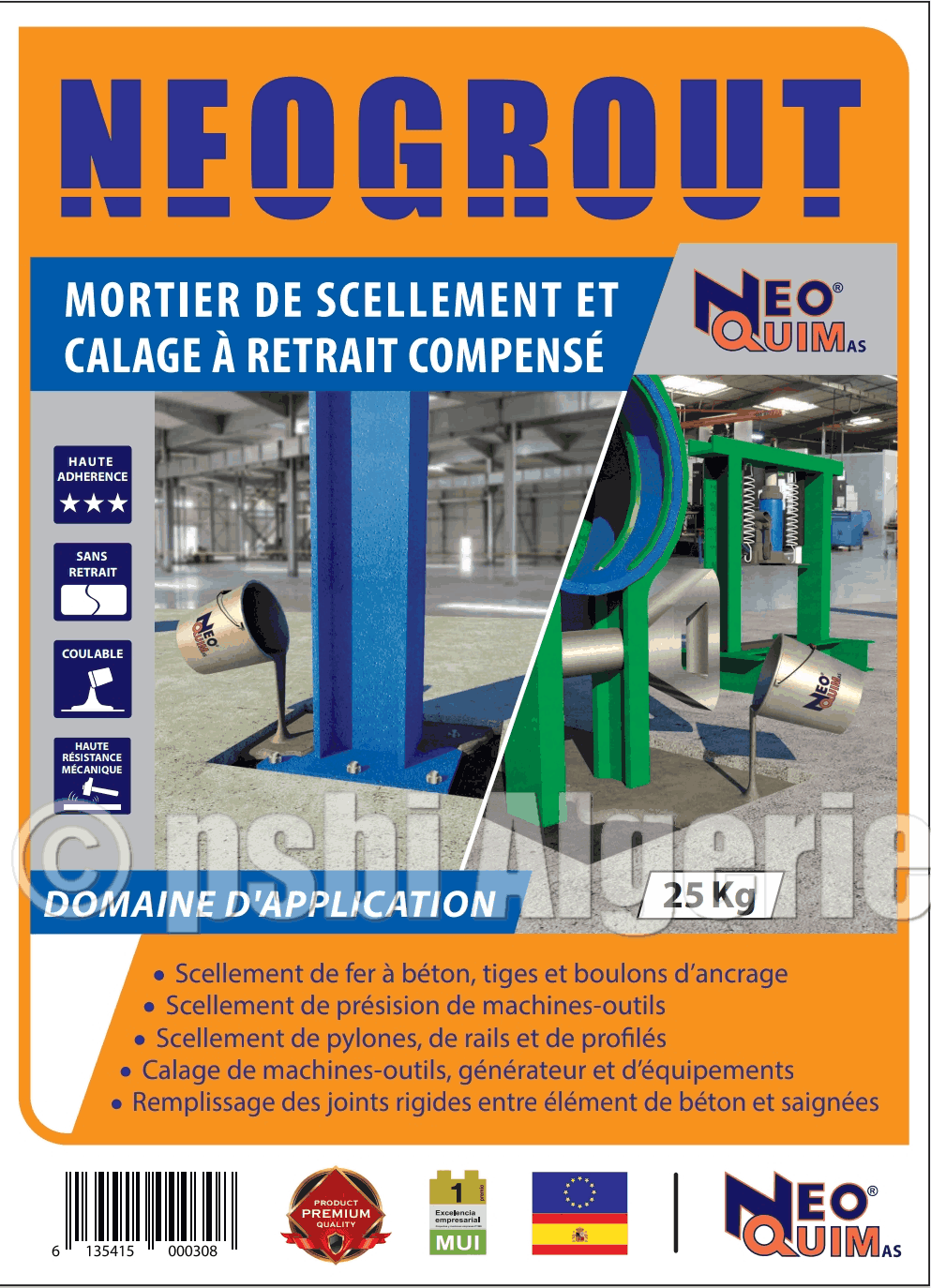 Neogrout est un mortier hydraulique prêt à l'emploi composé de charges sélectionnées, de ciment de haute résistance et d'adjuvants spéciaux.