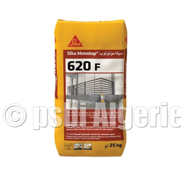 - Le Sika MonoTop®-620 F est un mortier fibré prêt à l’emploi pour la réparation.